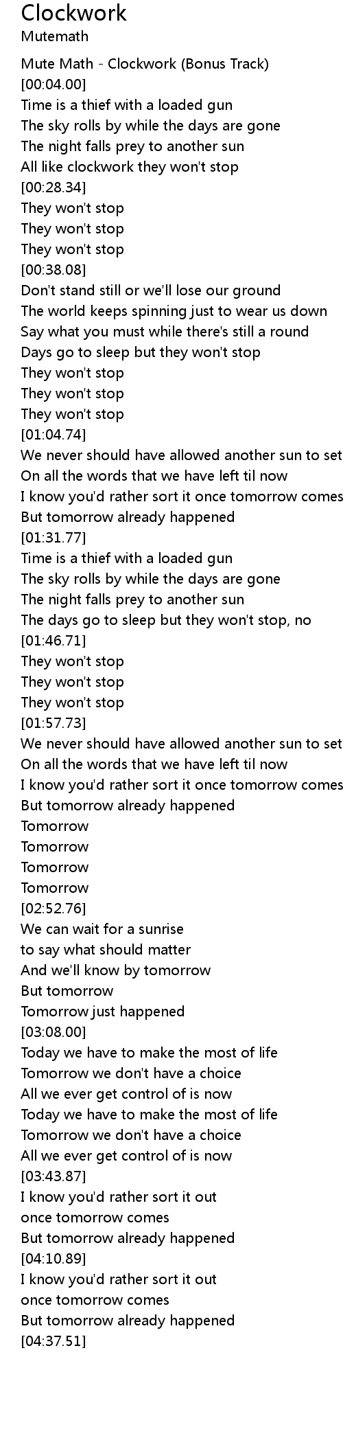 | [00:00.00] | Mute Math - Clockwork (Bonus Track) |