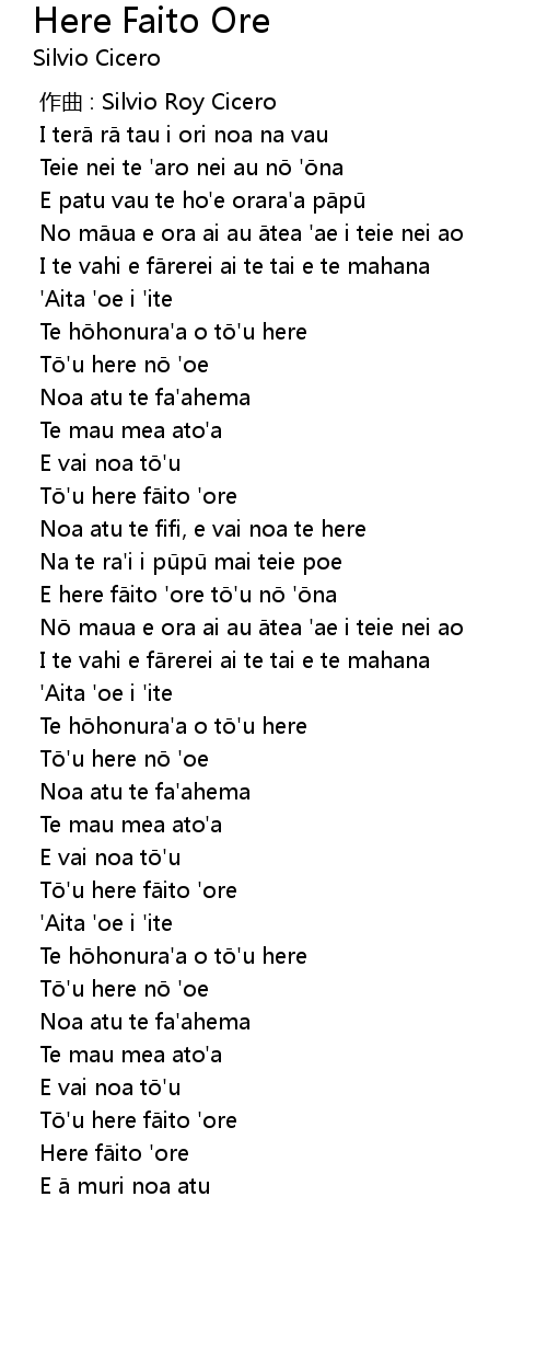 | [03:08.763] | To' u here fa ito ' ore |