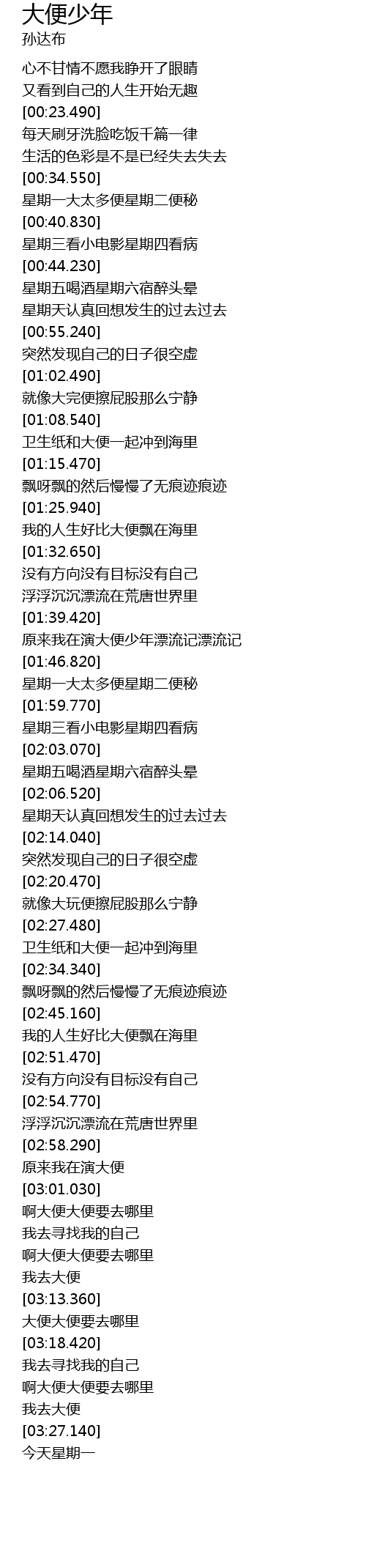 | [01:29.830] | 我的人生好比大便飘在海里 |
