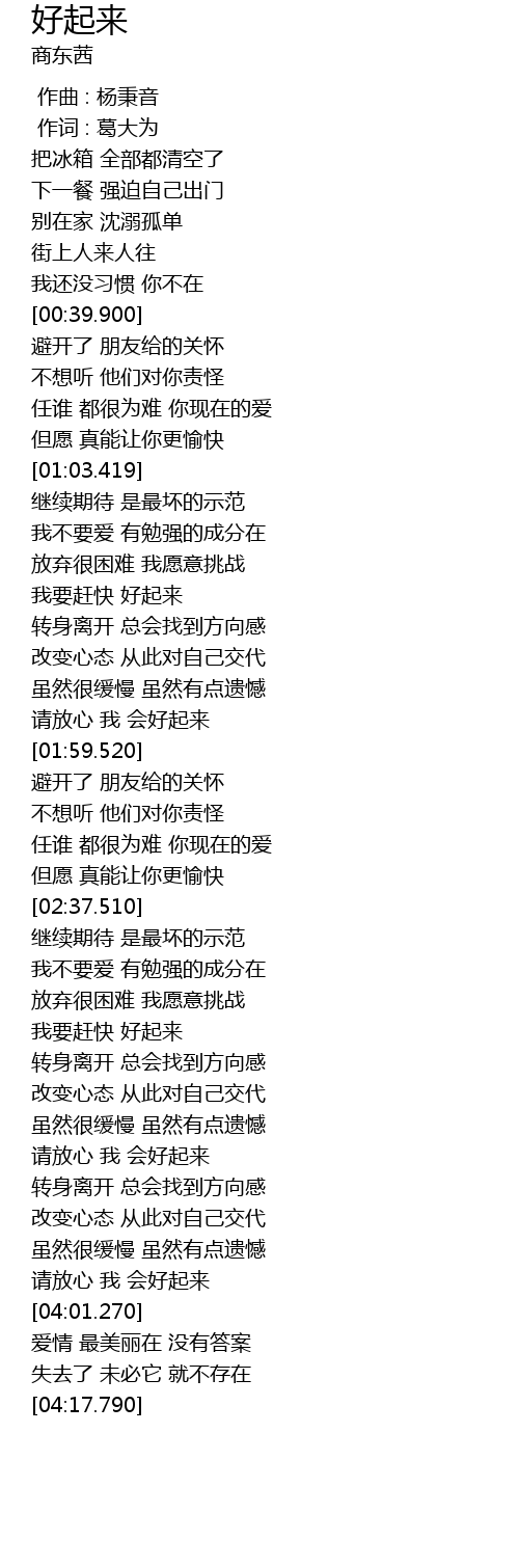 | [02:58.800] | wo yao gan kuai hao qi lai |