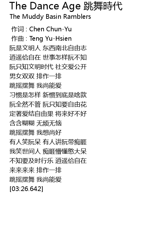 | [03:18.988] | 跳摇摆舞 我尚能爱 |