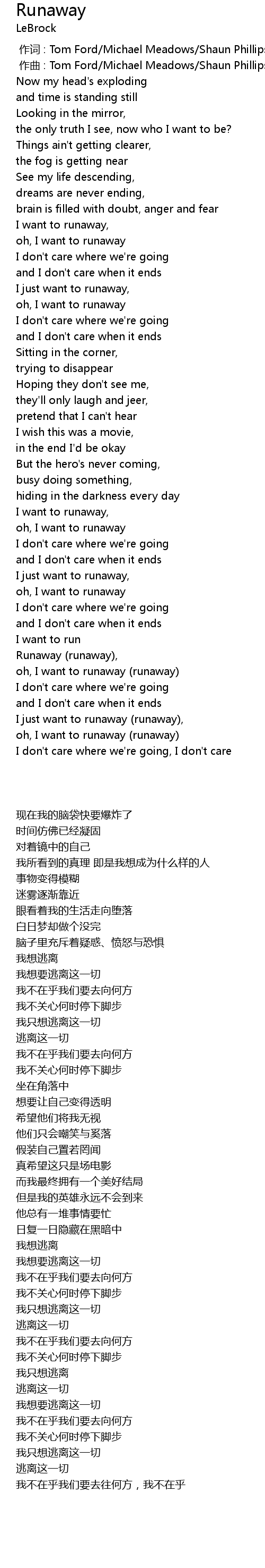 | [03:14.64] | oh, I want to runaway runaway |