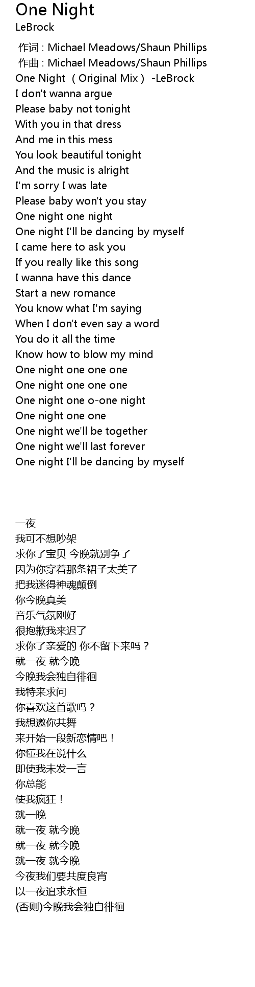 | [00:00.00] | One Night (Original Mix) -LeBrock |