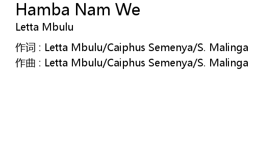 | 作词 : Letta Mbulu/Caiphus Semenya/S. Malinga | |