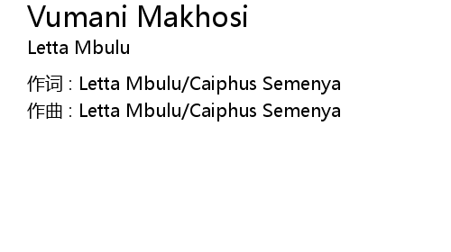 | 作词 : Letta Mbulu/Caiphus Semenya | |