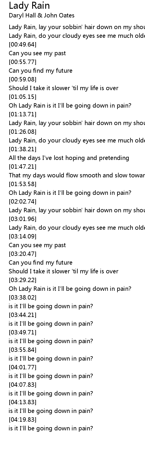 Lady Rain, lay your sobbin' hair down on my shoulder |