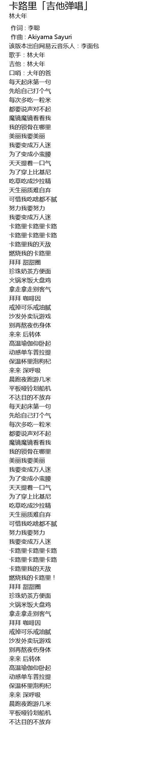 | [02:43.504] | kǎ lù lǐ kǎ lù lǐ kǎ lù |
