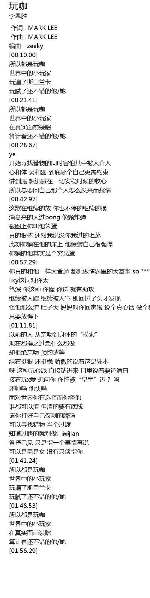 | [00:19.10] | 玩腻了还不错的他/她 |