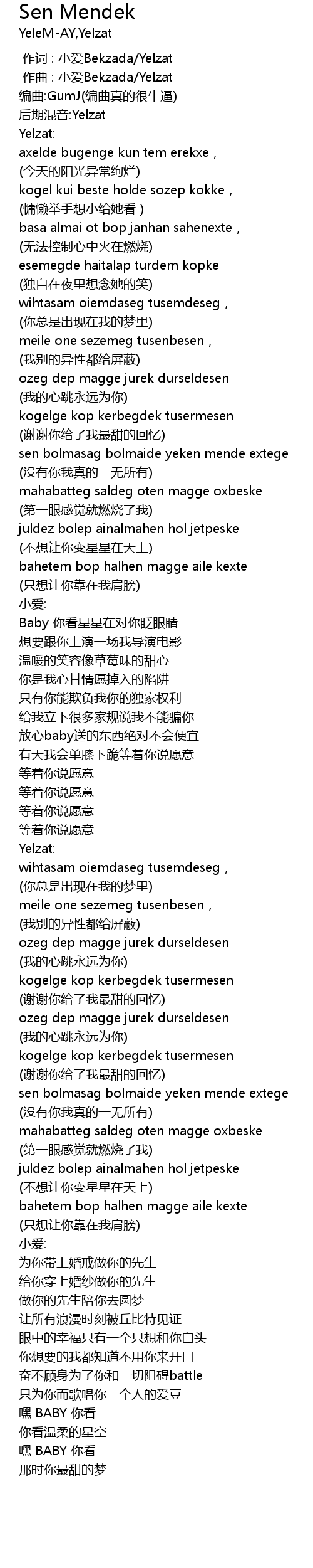 | [00:00.000] | 作词 : 小爱Bekzada/Yelzat |