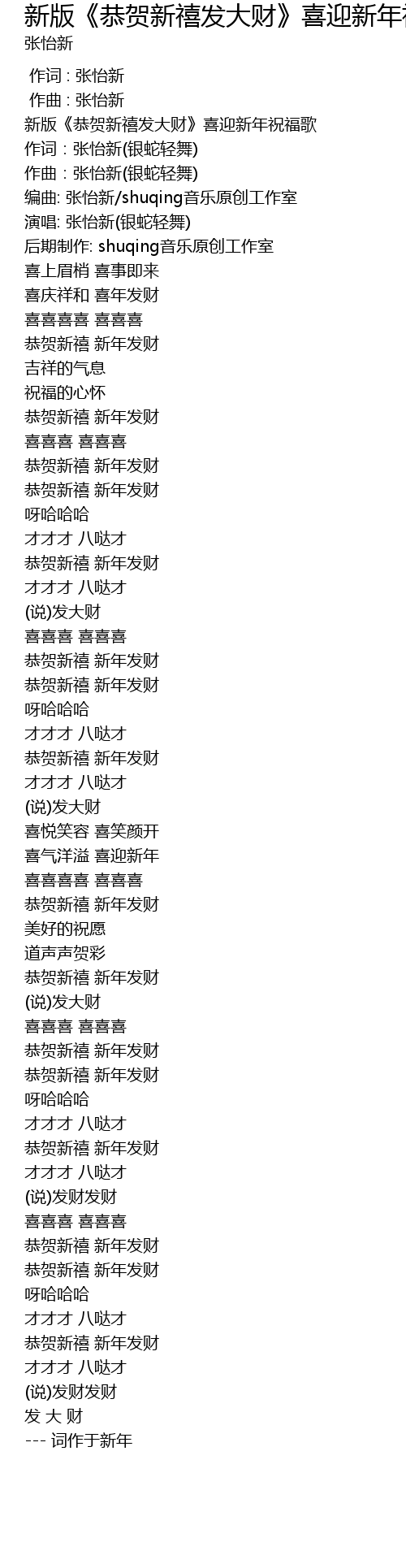 | [00:00.696] | 新版《恭贺新禧发大财》喜迎新年祝福歌 |