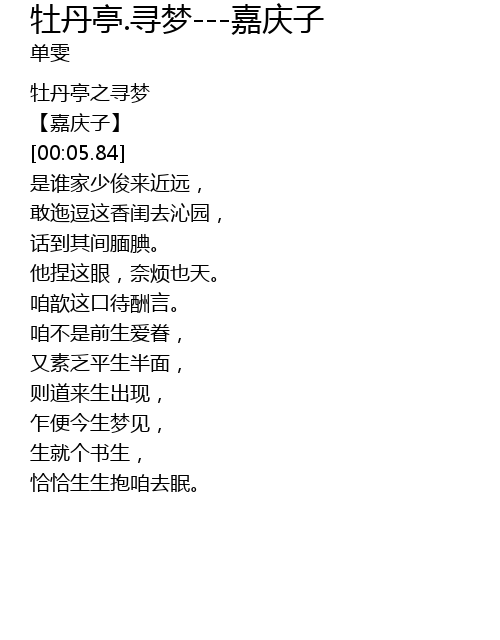 | [00:01.26] | mǔ dan tíng zhī xún mèng |