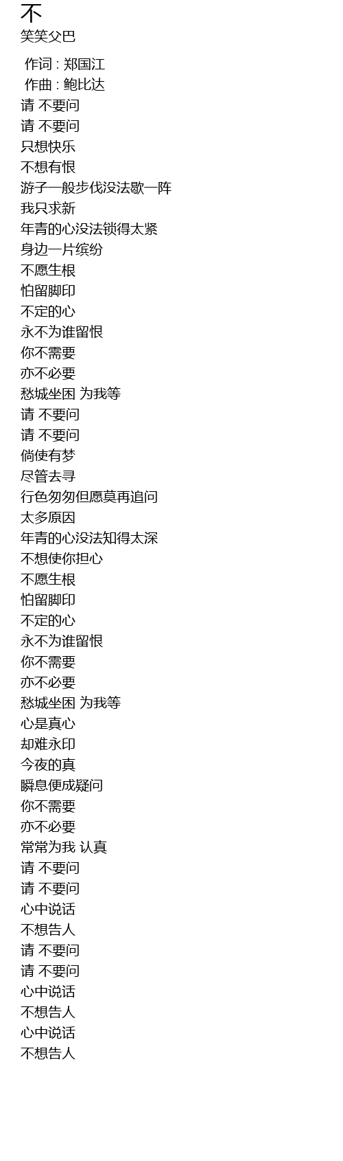| [02:50.180] | 请 不要问 |