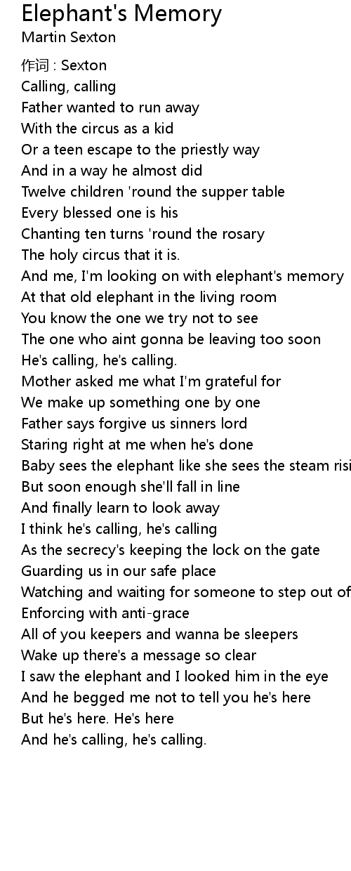 | And me, I' m looking on with elephant' s memory | |