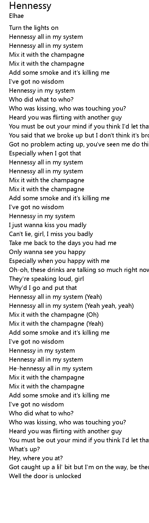 | [02:20.93] | Hennessy in my system |