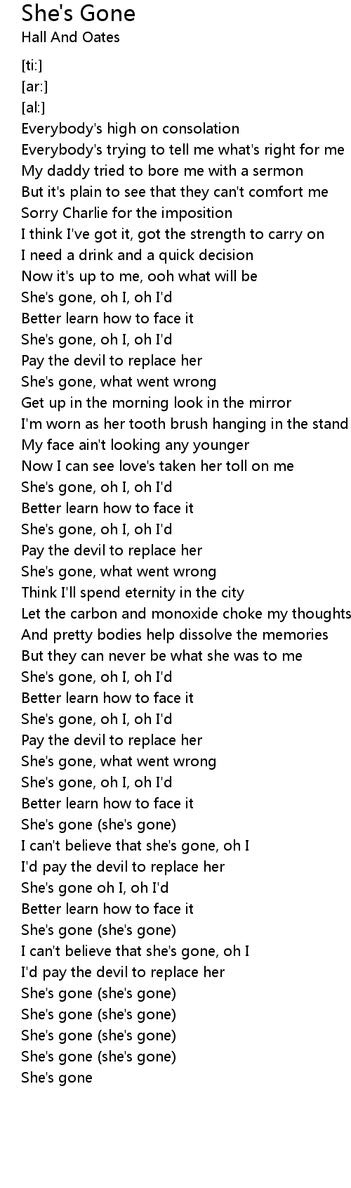 She's gone, oh I, oh I'd |