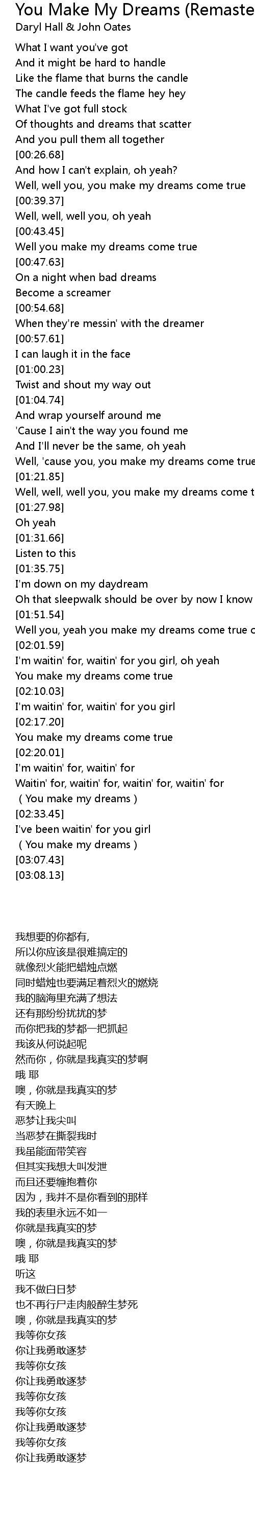 | [01:12.73] | Well, 'cause you, you make my dreams come true oh yeah |