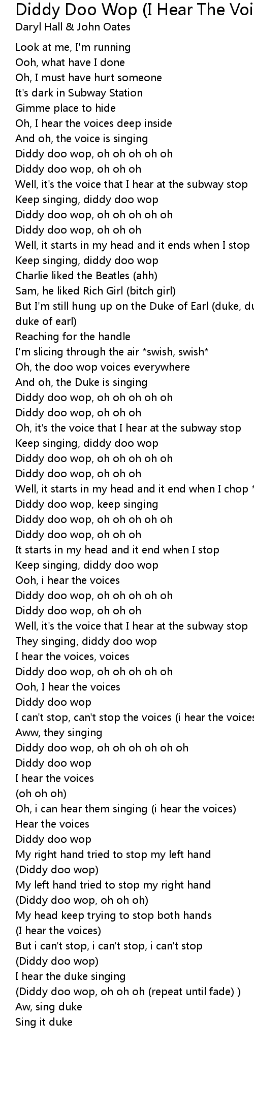 (Diddy doo wop, oh oh oh (repeat until fade) ) |