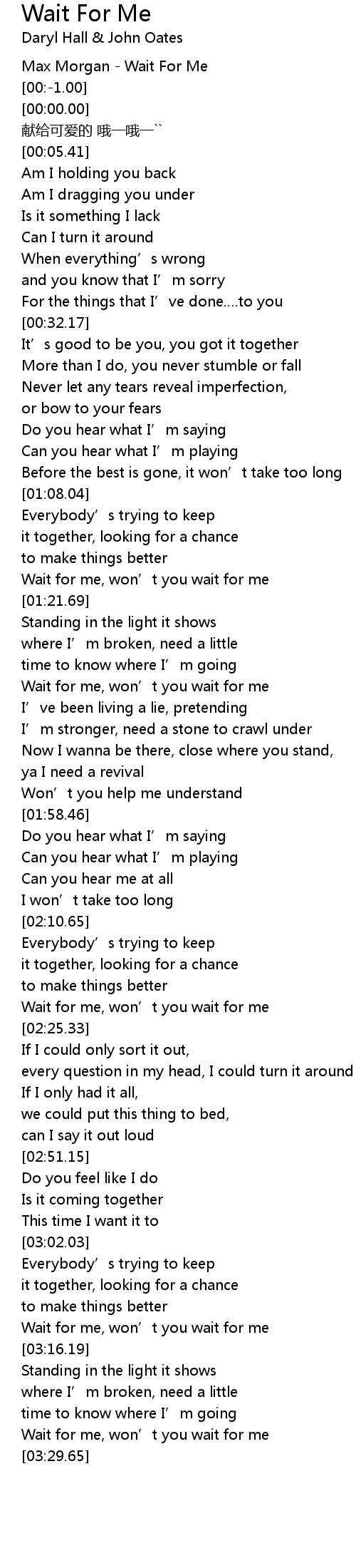 | [03:23.40] | Wait for me, won' t you wait for me |