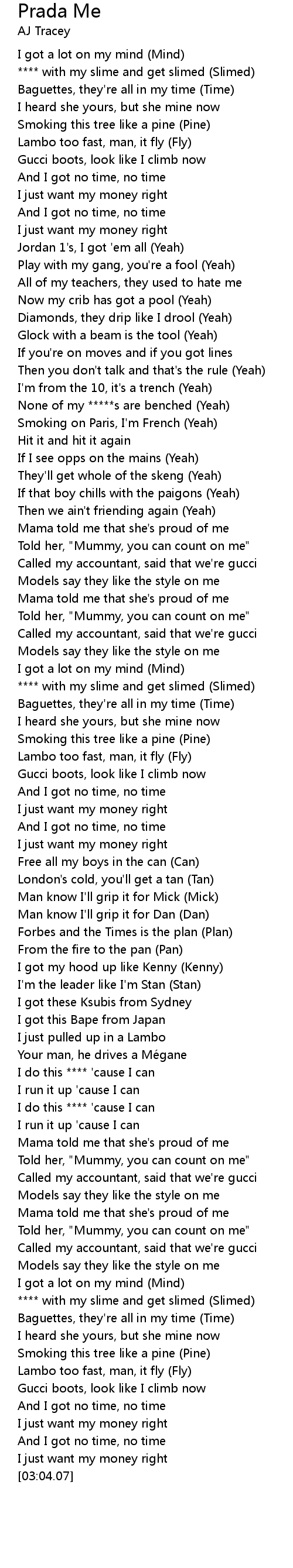 | [01:21.73] | Called my accountant, said that we're gucci |