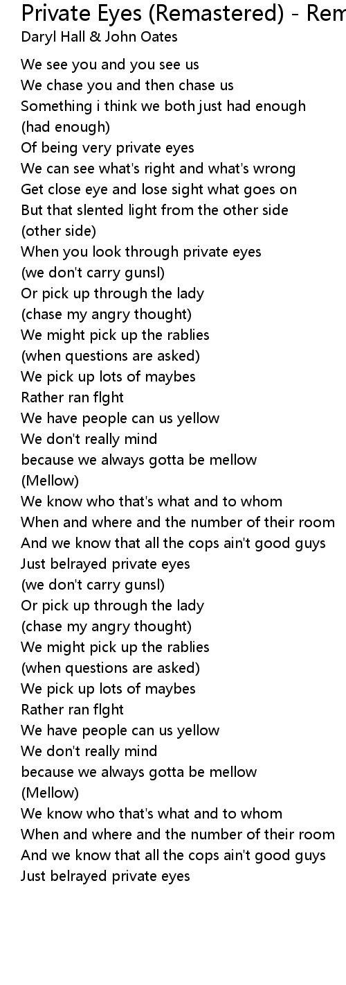 Private Eyes (Remastered) - Remastered 2003 Lyrics