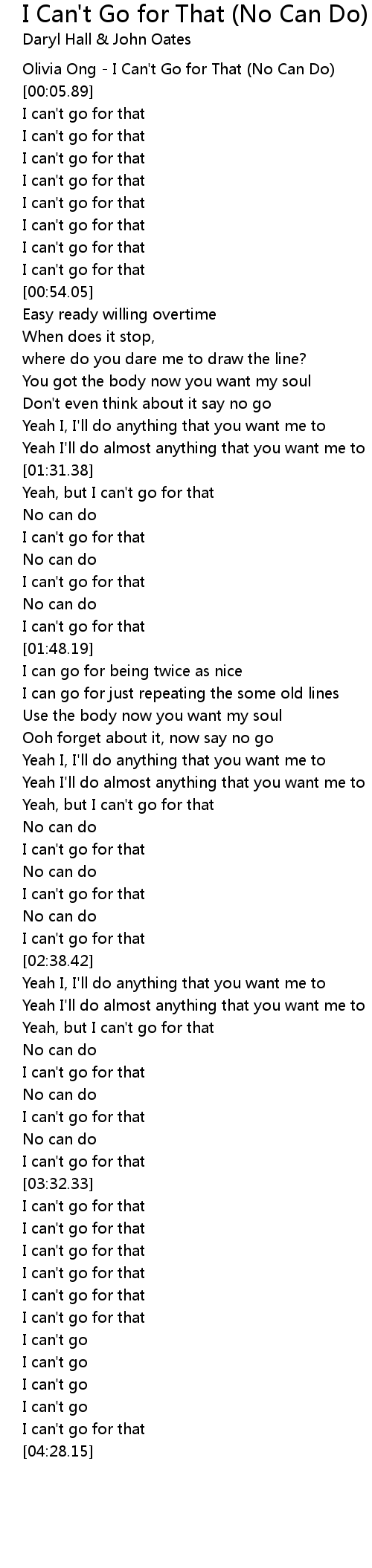 [00:01.12] Olivia Ong - I Can't Go for That (No Can Do)