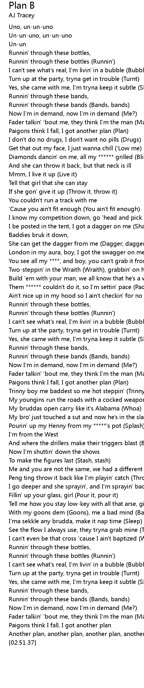 | [02:48.70] | Another plan, another plan, another plan, another plan |