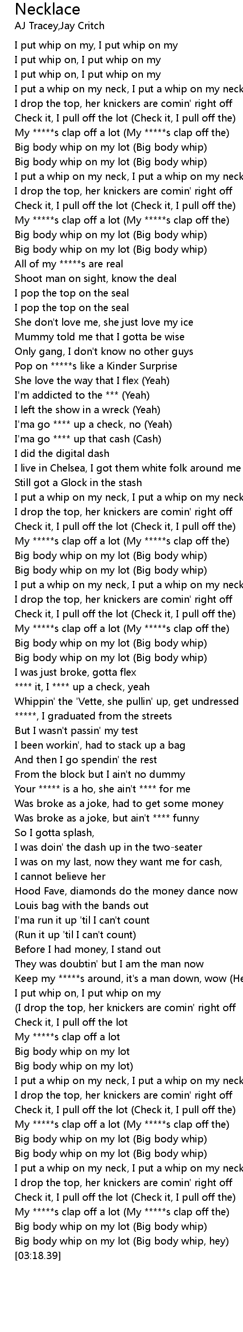| [03:03.66] | I put a whip on my neck, I put a whip on my necklace |