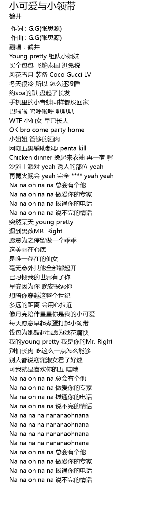 | [03:08.922] | Na na oh na na 做爱你的专家 |