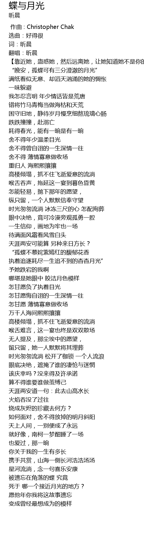 | [00:35.20] | “晚安,孤蝶可有三分澄澈的月光” |