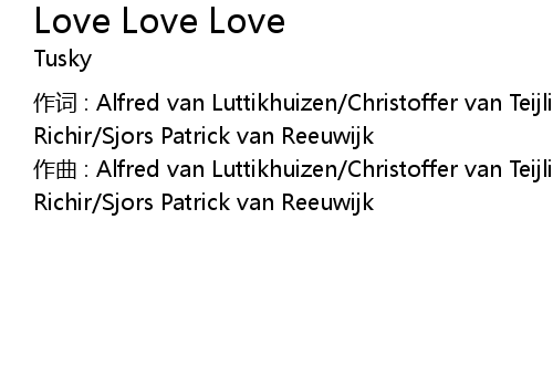 | 作词 : Alfred van Luttikhuizen/Christoffer van Teijlingen/Bas Allein Richir/Sjors Patrick van Reeuwijk | |