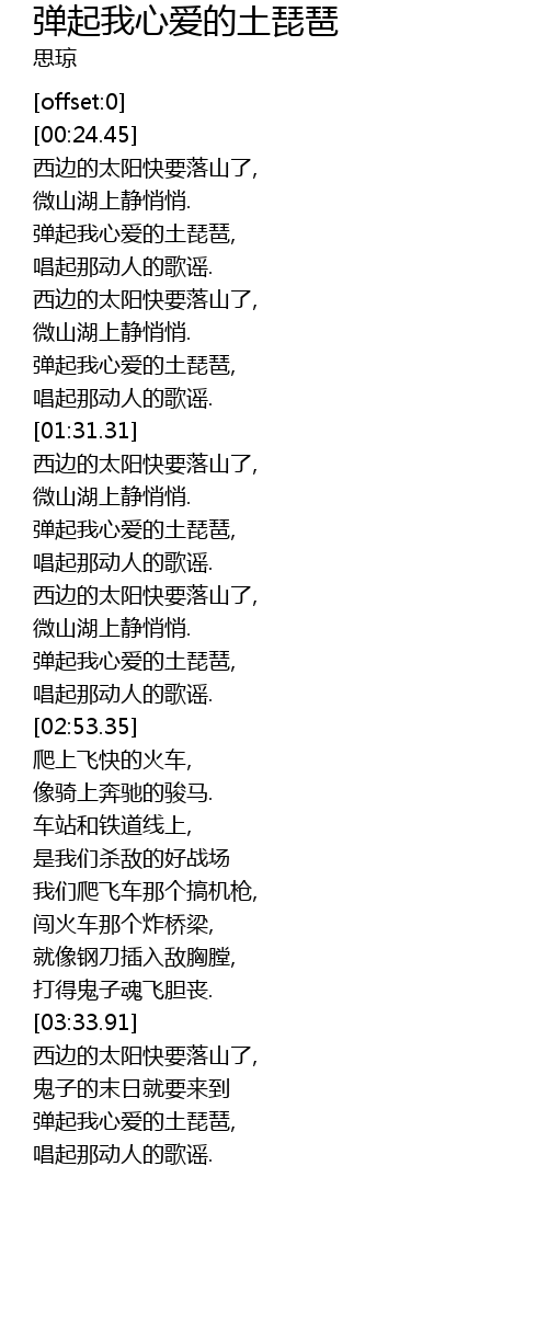 | [02:12.43] | 弹起我心爱的土琵琶, |