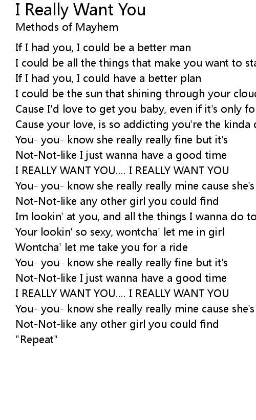 I REALLY WANT YOU.... I REALLY WANT YOU |