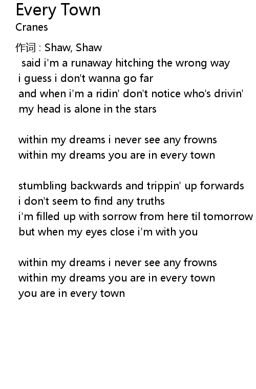 | within my dreams you are in every town | |