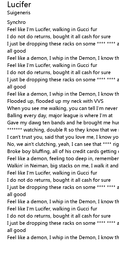 Feel like I'm Lucifer, walking in Gucci fur |