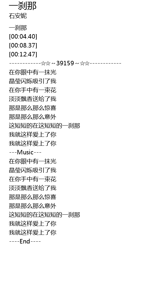 | [00:14.60] | ------------☆☆~39159~☆☆------------ |
