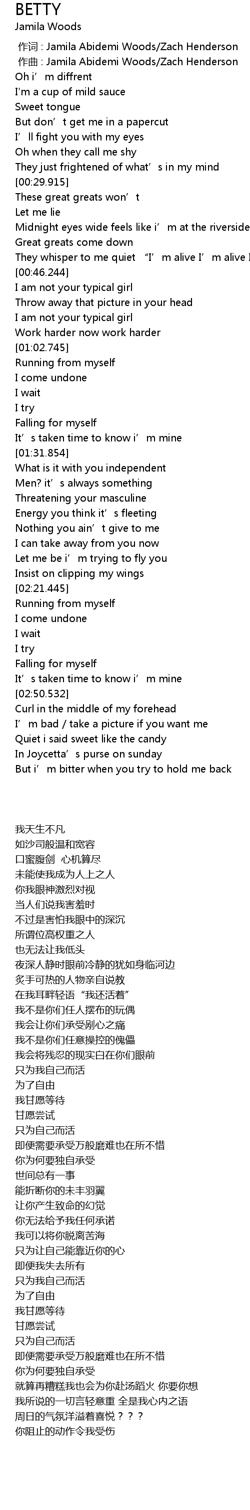| [00:01.000] | zuò qǔ : Jamila Abidemi Woods Zach Henderson |