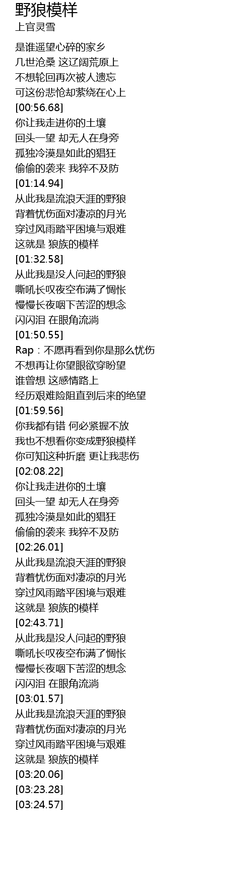 | [01:32.90] | 从此我是没人问起的野狼 |