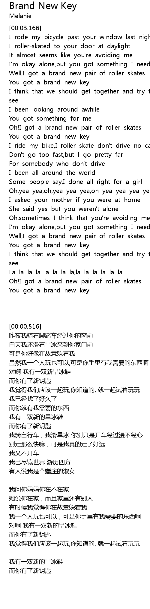 You got a brand new key |