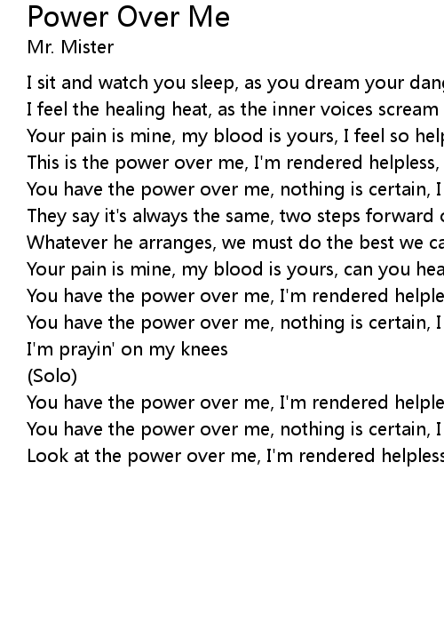 This is the power over me, I'm rendered helpless, you've got me on my knees |