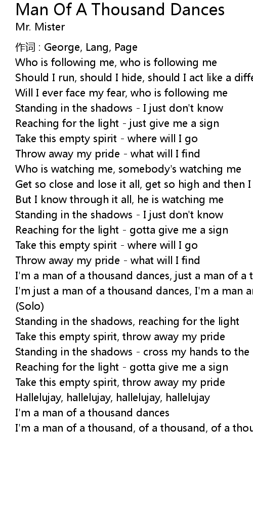 | I'm a man of a thousand dances, just a man of a thousand dreams | |