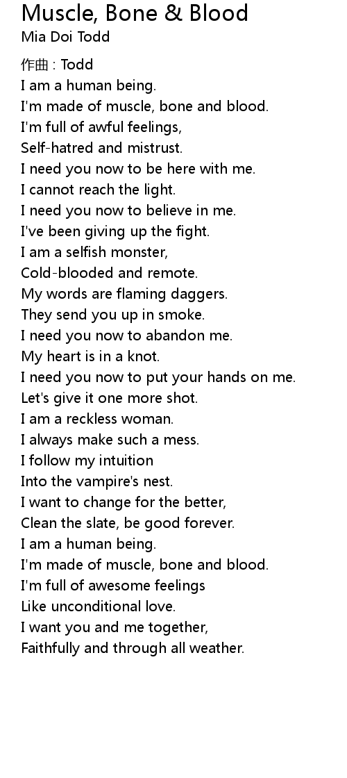 | Song | Muscle, Bone & Blood |