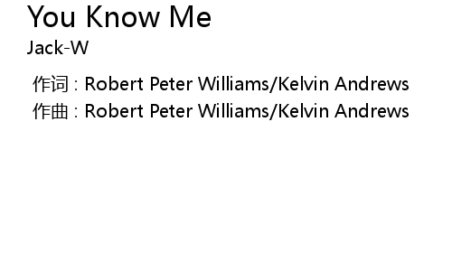 | [00:00.000] | 作曲 : Robert Peter Williams/Kelvin Andrews |
