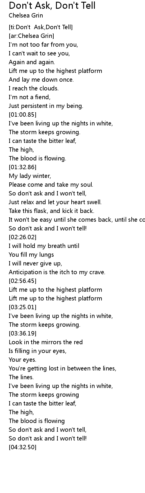 [ti:Don't Ask,Don't Tell] |