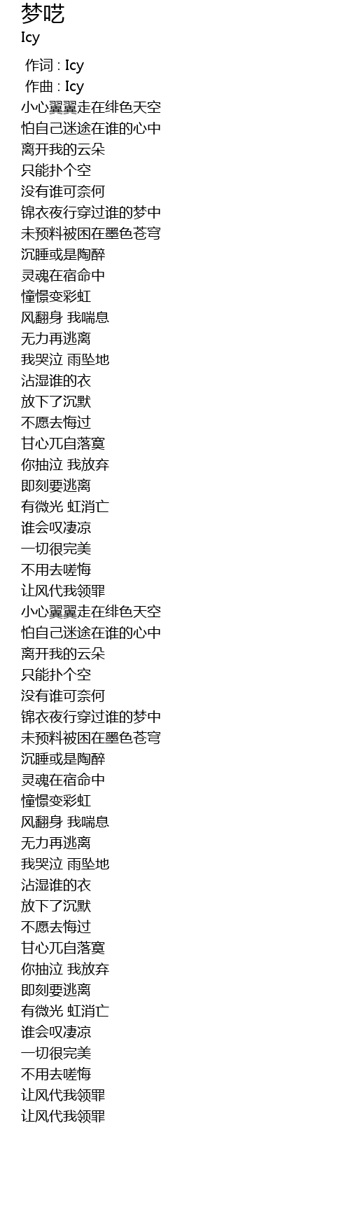 | [03:15.189] | 锦衣夜行穿过谁的梦中 |