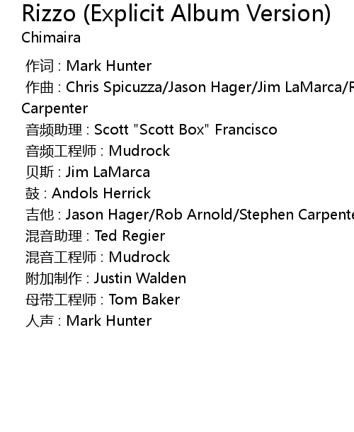 | [00:00.000] | 作曲 : Chris Spicuzza/Jason Hager/Jim LaMarca/Rob Arnold/Stephen Carpenter |