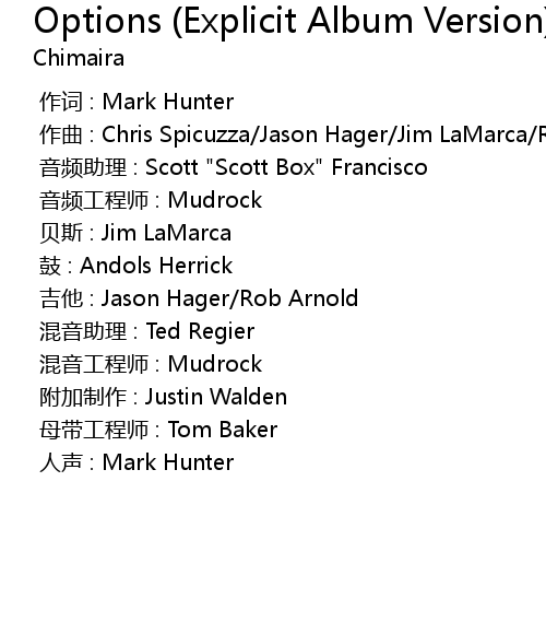 | [00:00.000] | zuo qu : Chris Spicuzza Jason Hager Jim LaMarca Rob Arnold |
