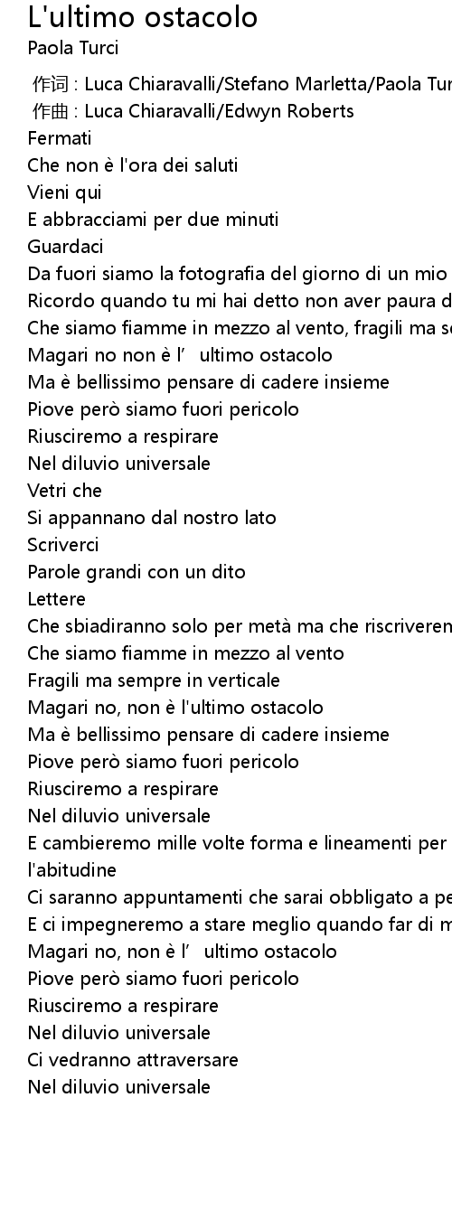 | [00:00.000] | 作词 : Luca Chiaravalli/Stefano Marletta/Paola Turci |