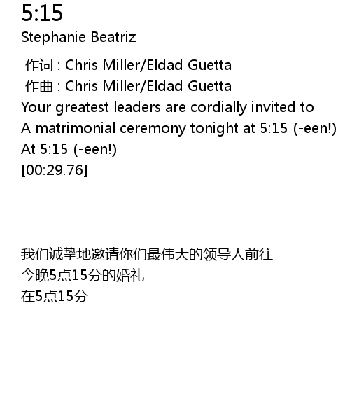 | [00:01.000] | 作曲 : Chris Miller/Eldad Guetta |