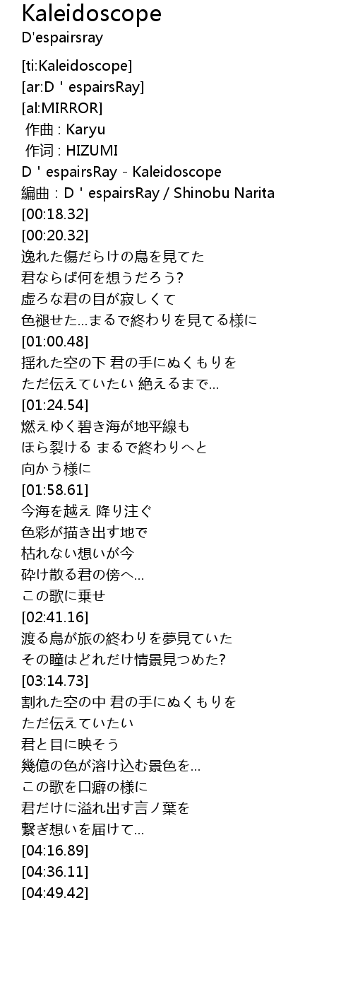 | [00:00.00] | D'espairsRay - Kaleidoscope |