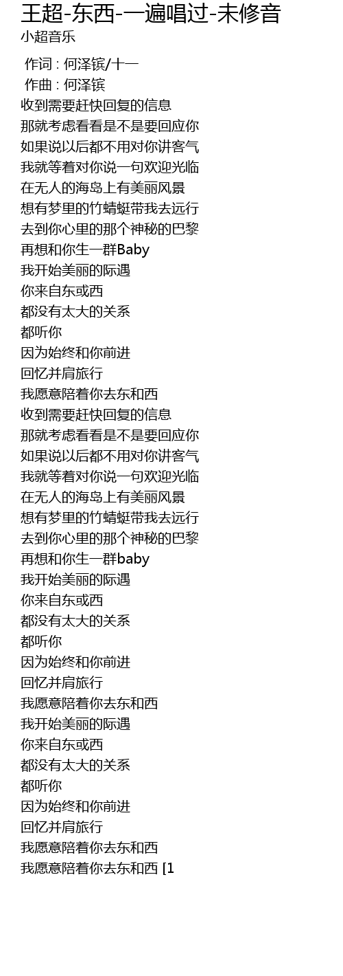 | [02:01.090] | 我愿意陪着你去东和西 |